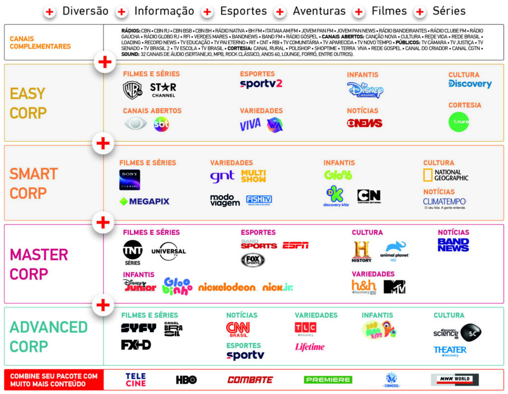 Ofereça a melhor experiência de entretenimento para os seus clientes com filmes, séries, esportes, variedades, canais infantis e notícias.